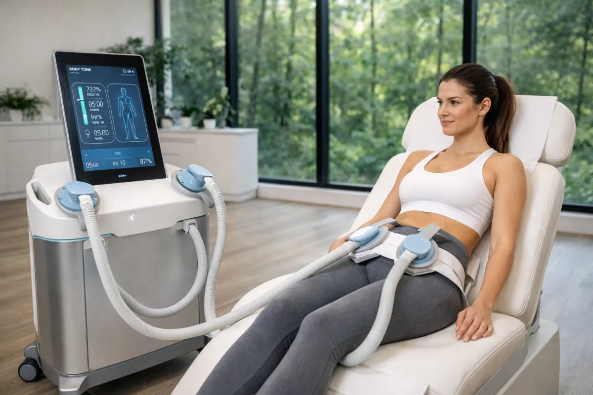 Tecnología avanzada que ayuda a tonificar músculos y mejorar la silueta de forma no invasiva.